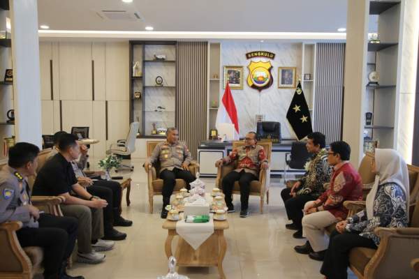 Dalam upaya memperkuat sinergi antar lembaga serta mendukung optimalisasi penerimaan negara, Kapolda Bengkulu Irjen Pol Mardiyono, S.I.K., M.Si menerima audiensi dan kunjungan kerja dari Kantor Wilayah Direktorat Jenderal Pajak (DJP) Bengkulu dan Lampung, Kamis (16/4/2026). Kegiatan tersebut berlangsung di ruang kerja Kapolda Bengkulu mulai pukul 10.00 WIB hingga selesai, dalam suasana penuh keakraban dan profesionalitas. 16/04.