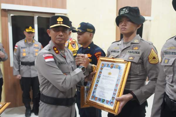 ACEH TAMIANG – Kapolda Aceh memberikan penghargaan kepada Komandan Batalyon (Danyon) Taruna Akademi Kepolisian, personel Polda Aceh, serta Taruna Akpol yang dinilai berjasa dalam pengembangan ketahanan pangan di wilayah terdampak bencana serta aksi kemanusiaan penyelamatan seorang pemuda yang hanyut di Sungai Aceh Tamiang. 06/02.