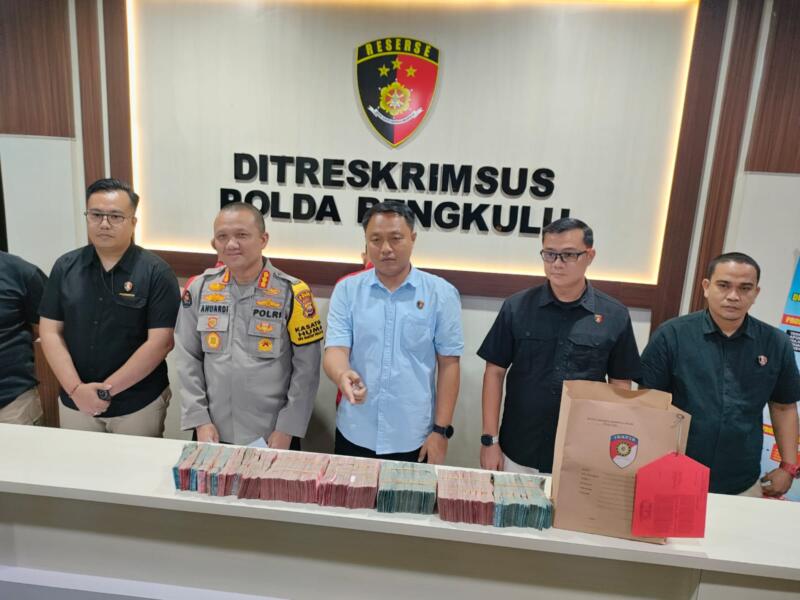 Kabid Humas Polda Bengkulu Kombes Pol Anuardi, S.Ik., M.Si., bersama Dir Reskrimsus Polda Bengkulu Kombes Pol I Wayan Riko Setiawan, S.Ik., M.H, didampingi Kasubdit Tipidkor Dit Reskrimsus Polda Bengkulu AKBP Fuad Rangkuti, S.Ik. saat press conference siang ini ( 17/10/24) mengungkapkan, dari hasil pengungkapan tindak pidana korupsi tersebut pihaknya berhasil menetapkan sebanyak 10 orang tersangka dalam proses pembangunan gedung tersebut.