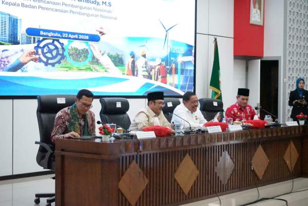Menteri Perencanaan Pembangunan Nasional (PPN)/Kepala Badan Perencanaan Pembangunan Nasional (Bappenas), Rachmat Pambudy, menegaskan posisi Provinsi Bengkulu dalam sistem pembangunan nasional melalui mandala pengembangan bioindustri dan ekonomi hijau. Hal tersebut disampaikan dalam rapat koordinasi bersama Pemerintah Provinsi Bengkulu para Bupati dan Wali kota, serta Kepala Bappeda di Aula Merah Putih, Kantor Gubernur Bengkulu. 23/04.