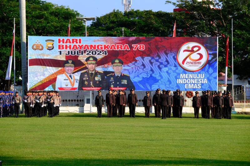 Bengkulu – eksisberita.com. Setelah beberapa rangkaian kegiatan yang telah dilaksanakan Polda Bengkulu untuk menyemarakkan HUT Bhayangkara, hari ini Senin (01/07/2024) Polda Bengkulu memeriahkan Puncak acara peringatan Hari Ulang Tahun ke 78 Polri dengan menggelar upacara bertempat di Lapangan Balai raya Semarak Provinsi Bengkulu. Perayaan HUT Bhayangkata ke-78 Kali ini mengangkat tema “Polri Presisi Mendukung Percepatan Transformasi Ekonomi yang Berkelanjutan Menuju Indonesia Emas”.