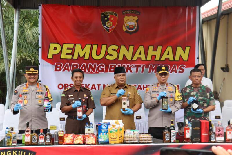 BENGKULU – Kepolisian Daerah (Polda) Bengkulu menggelar pemusnahan barang bukti hasil Operasi Pekat Nala II Tahun 2024 pada Senin (30/12/2024). Kegiatan yang dipimpin langsung oleh Kapolda Bengkulu, Irjen Pol. Anwar, S.I.K., M.Si., ini turut dihadiri oleh pejabat utama Polda Bengkulu serta Forkopimda Provinsi Bengkulu.