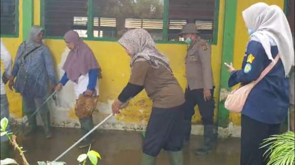 Sekolah tersebut merupakan salah satu fasilitas pendidikan yang terdampak banjir akibat tingginya curah hujan dalam beberapa waktu terakhir. Pasca surutnya air, sisa lumpur dan material banjir masih mengendap di sejumlah titik lingkungan sekolah sehingga membutuhkan penanganan cepat agar aktivitas belajar mengajar dapat kembali berjalan normal.