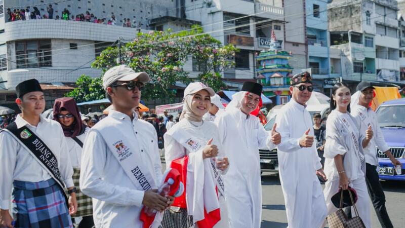 Antusiasme masyarakat sudah terlihat sepanjang jalan Universitas Dr. Hazairin hingga Simpang Lima Ratu Samban, kota Bengkulu, sejak Selasa (16/7) pagi.