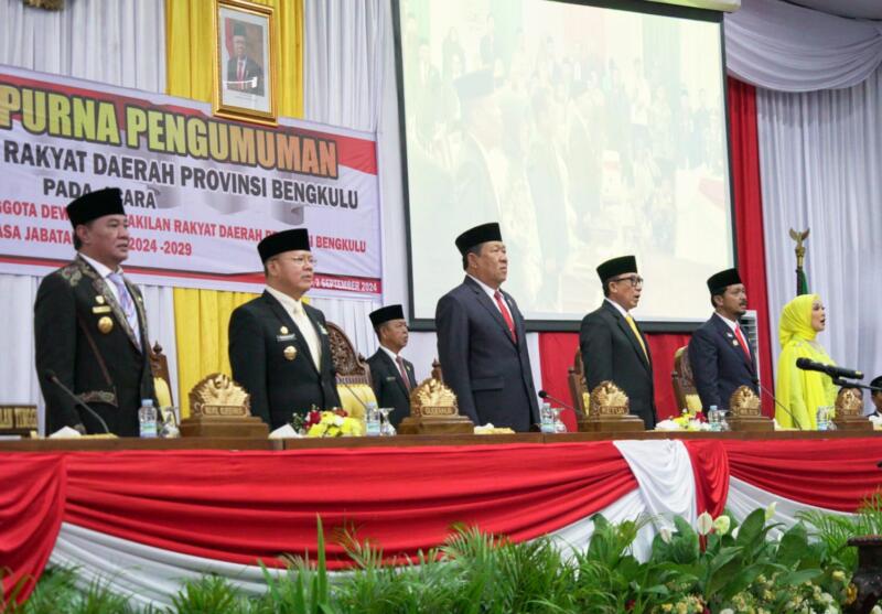 Sebanyak 45 anggota dewan provinsi yang baru, hasil Pemilu 2024, dilantik dan diambil sumpah jabatannya oleh Wakil Ketua Pengadilan Tinggi Bengkulu. Usai dilantik, dilakukan penandatanganan SK Pelantikan serta penyematan tanda lencana dewan oleh Wakil Ketua Pengadilan Tinggi Bengkulu.