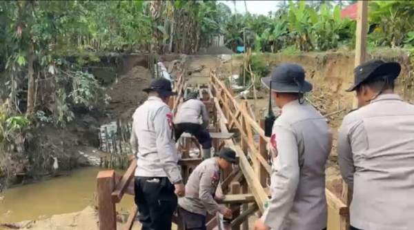 Kegiatan pembangunan jembatan darurat ini dilaksanakan pada Minggu (4/1/2026) oleh 27 personel Sat Brimob Polda Sumbar di bawah pimpinan IPDA Arumzein Laut selaku Paurlat Subbag Lat Sat Brimobda Sumbar.