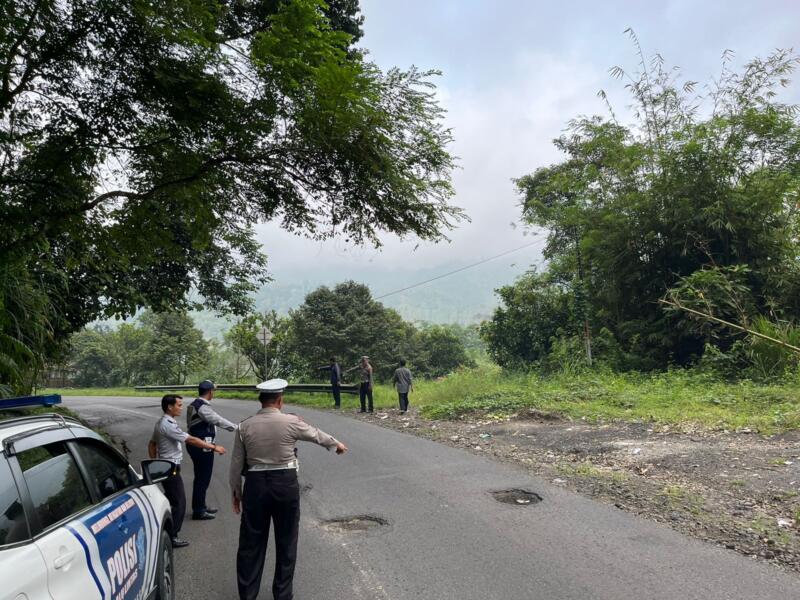 Jalan Lintas Kepahiang-Bengkulu tepatnya di daerah pegunungan yang berpotensi mengganggu Kamseltibcarlantas Keselamatan, Ketertiban, dan Kelancaran Lalu Lintas, Jum’at (31/05/2024).