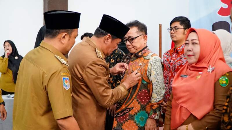 Pelaksana Tugas (Plt) Gubernur Bengkulu, Rosjonsyah, menyerahkan penghargaan Sidhakarya dan Penghargaan K3 Terbaik Tahun 2024 dalam acara yang diselenggarakan oleh Dinas Ketenagakerjaan dan Transmigrasi Provinsi Bengkulu, Senin (23/12/2024), di Hotel Adeva, Bengkulu.